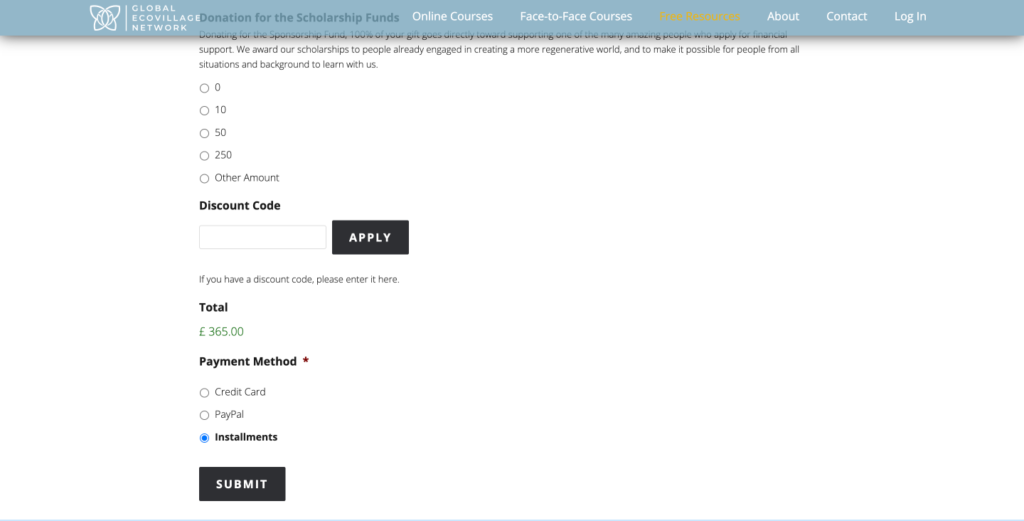 Ecovillage uses GravityForm for course registration, so they integrated PayFlexi GravityForm plugin extension.